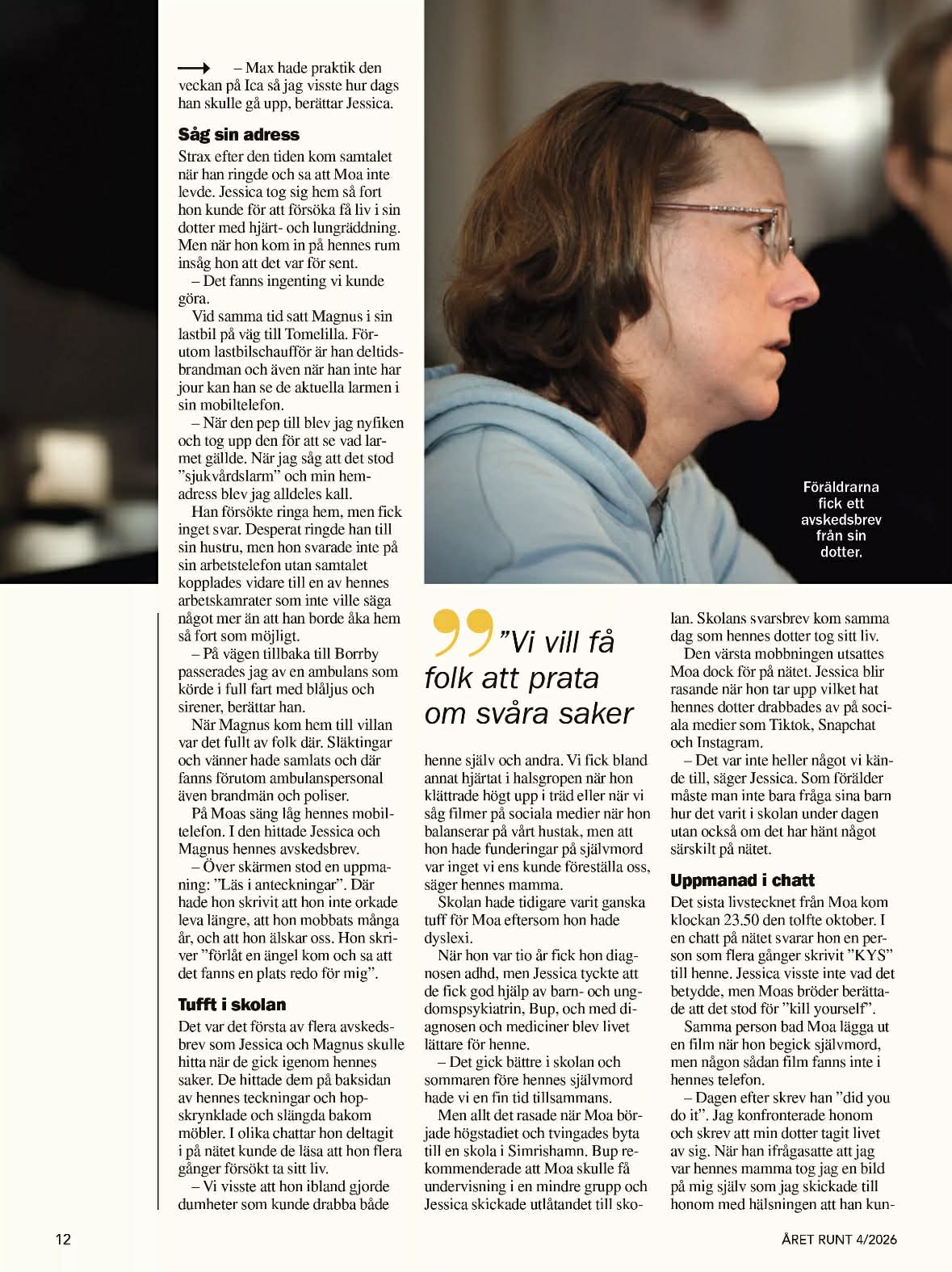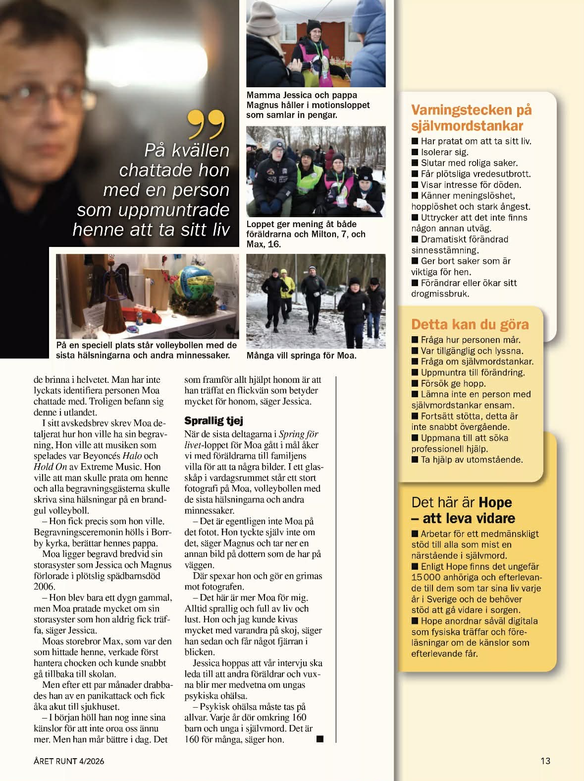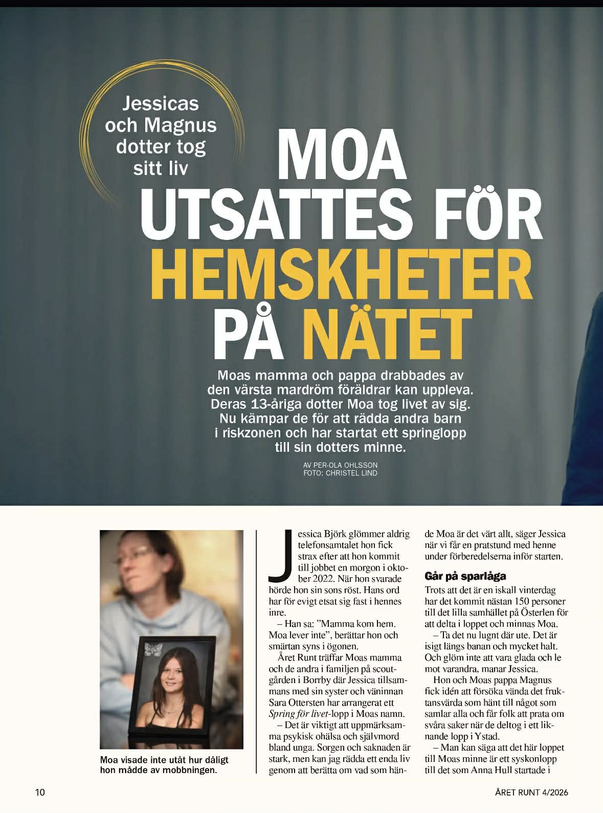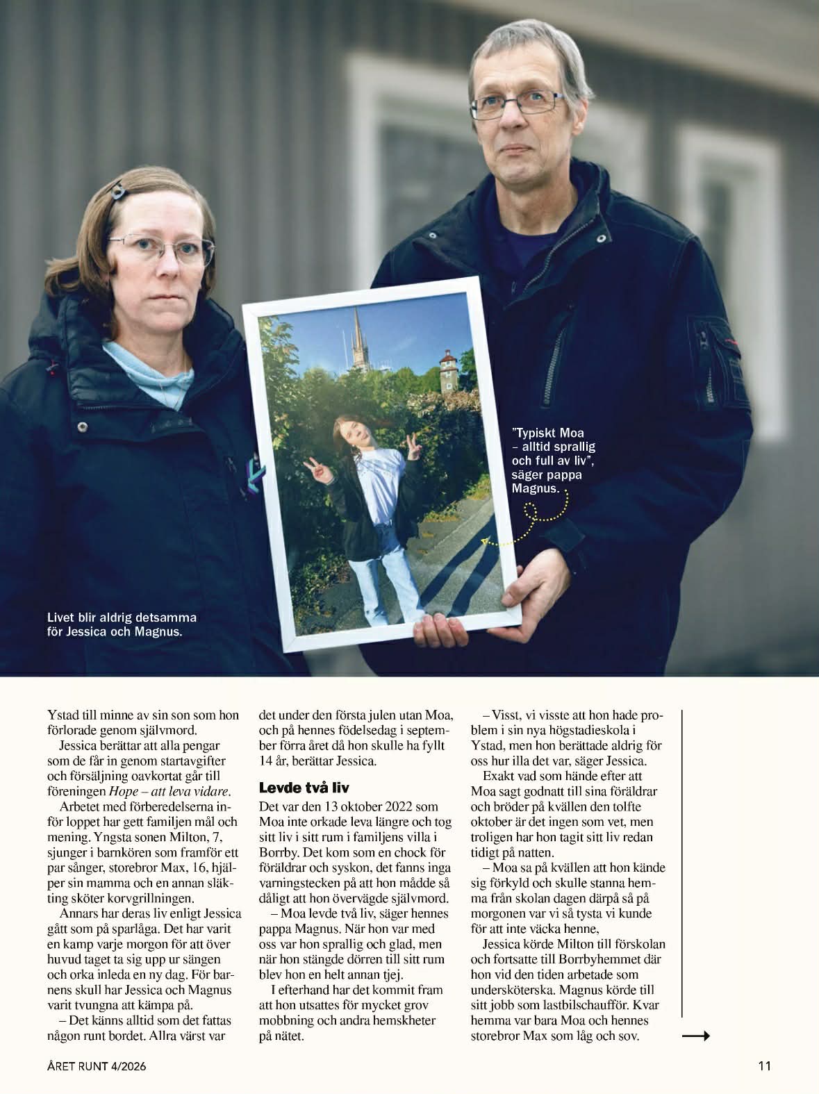Jessicas och Magnus dotter Moa, 13 år tog sitt liv 2022. I den här artikeln berättar de om sin dotter men även om hur de arrangerar Spring för livet – lopp.